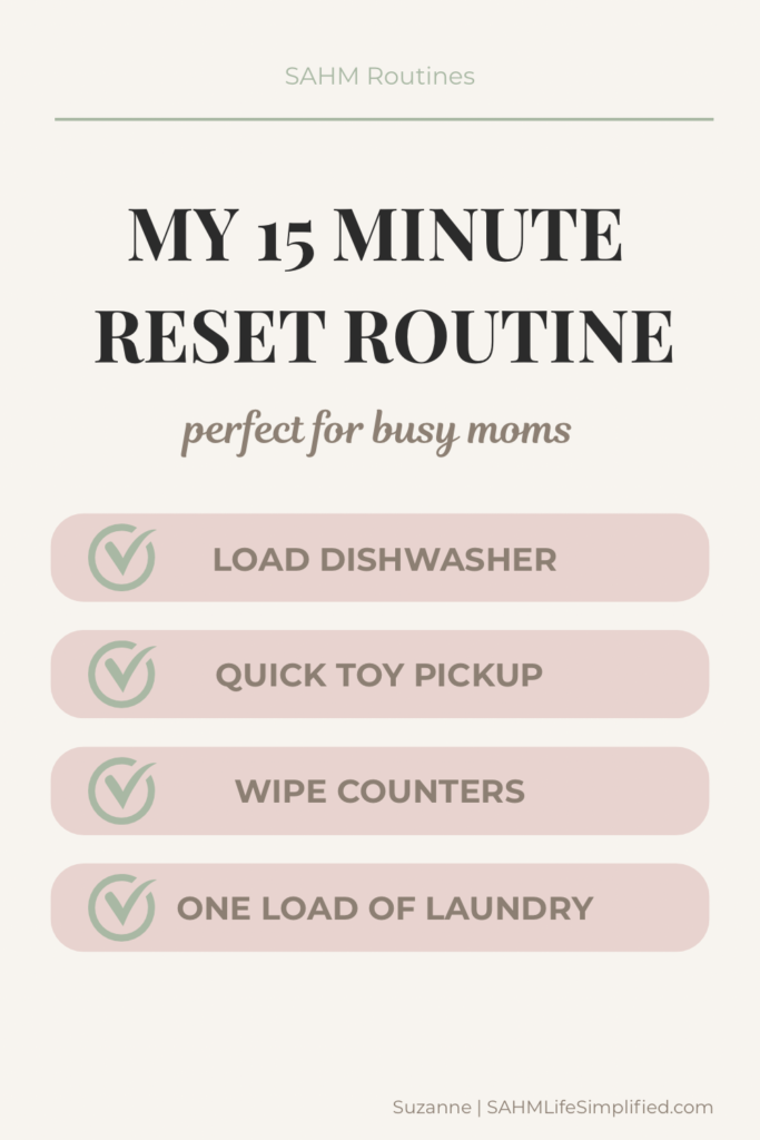 This simple 15 minute daily reset routine for moms helps keep your home manageable without spending hours cleaning at night.