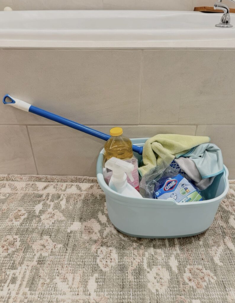Struggling to keep up with housework with little ones at home? This simple weekly cleaning schedule helps busy stay at home moms keep a clean home without overwhelm.